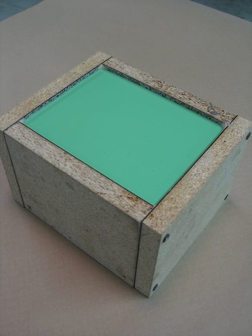 This mold box is made from melamine-laminated particle board [Figure 3]. The sides are secured together with screws. A variety of other materials can be used to construct the mold box, including: Plexiglas®, PVC pipe, acrylic, plywood, and UHMW polypropylene.