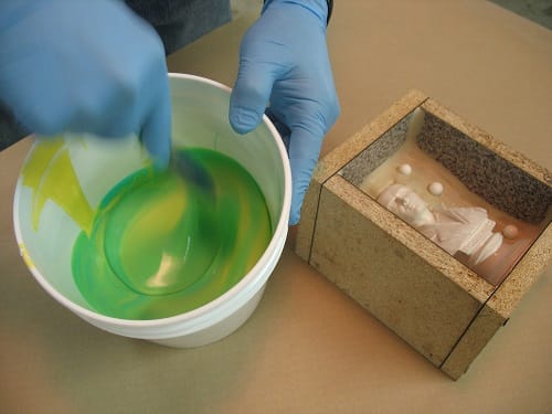 STEP ELEVEN: Pour Rubber to Create the Second Half of the Mold
